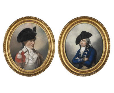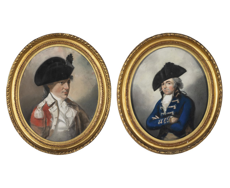 Both inscribed on reverse, identifying painter and sitters, who are pictured wearing the respective undress uniforms of the Grenadier (Sir Robert Baker) and Coldstream (Capt. John Baker) guards.