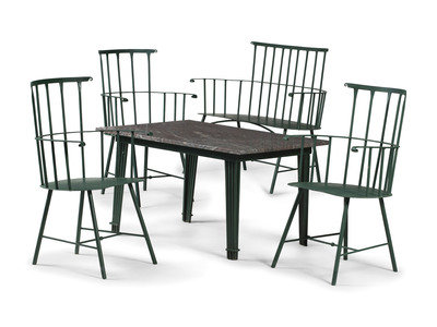 comprising a marble top table, bench and three armchairs.