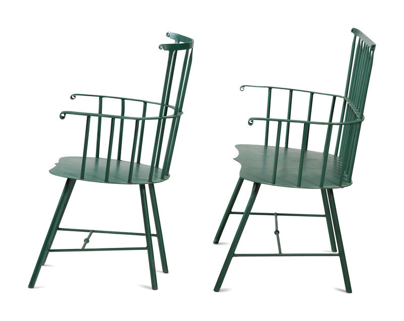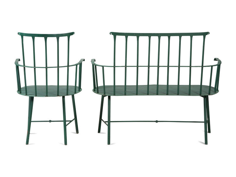 A Suite of Painted Metal Windsor Patio Furniture