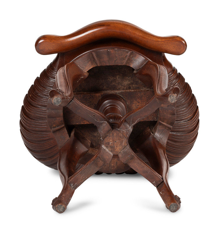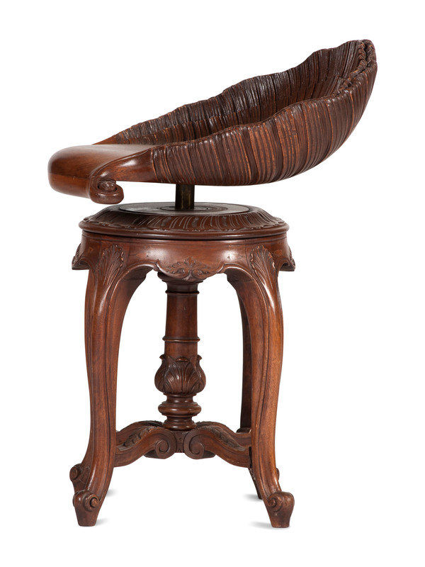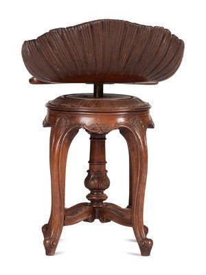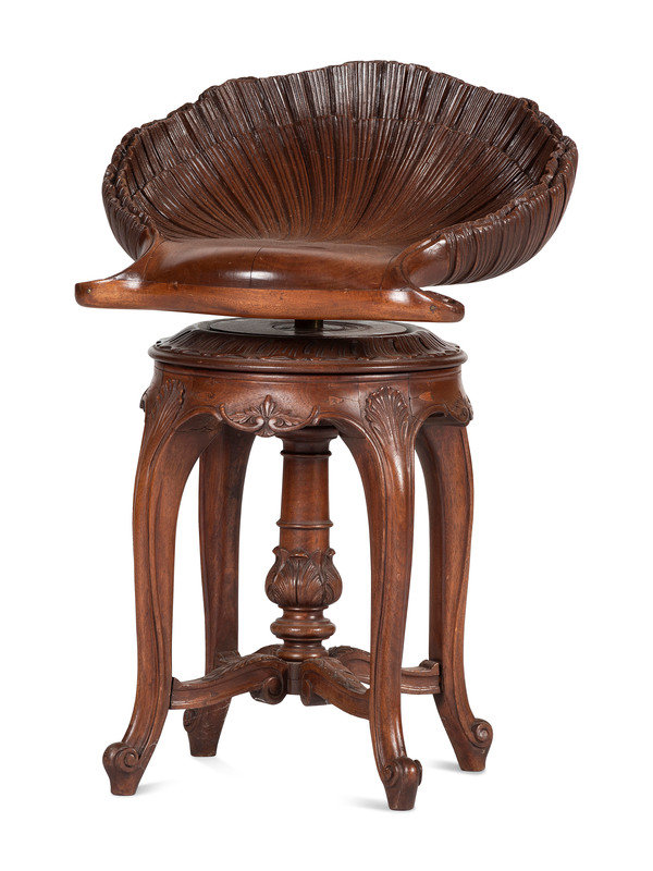 An Italian Grotto Shell-Carved Walnut Adjustable Music Stool