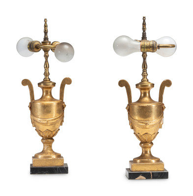 Height of each urn 9 3/4 inches; overall height 18 1/2 inches.