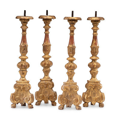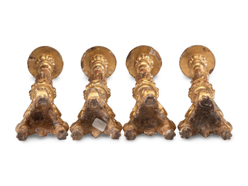 Four Continental Giltwood Pricket Sticks