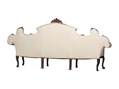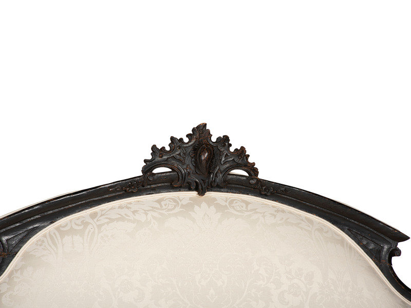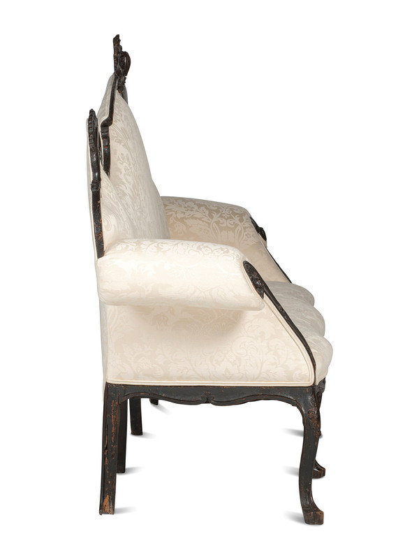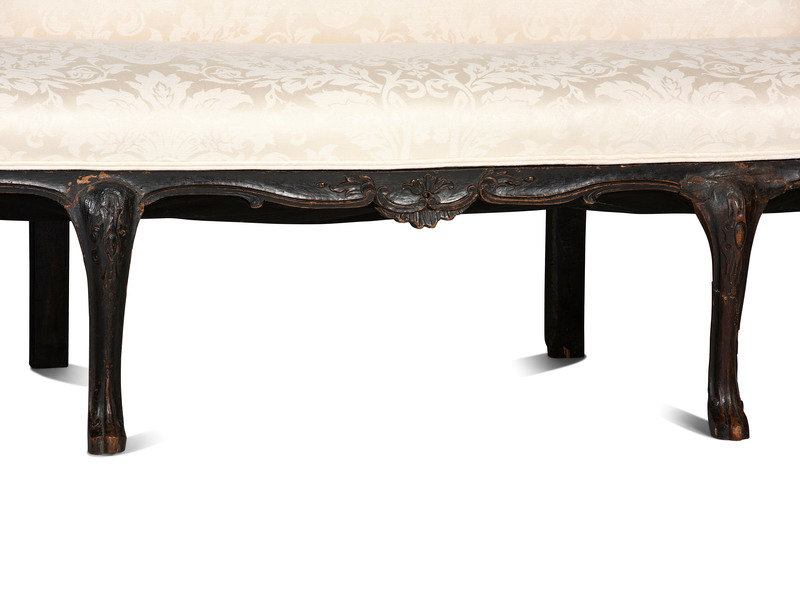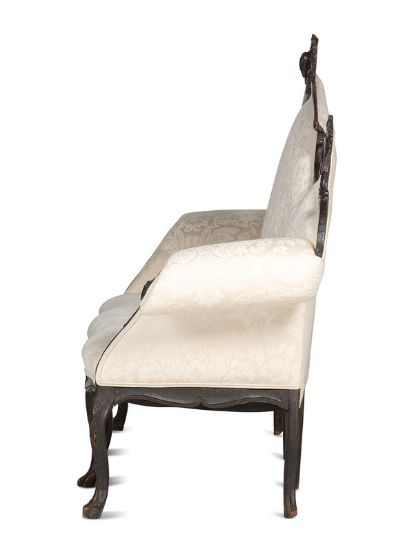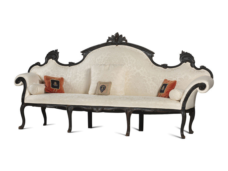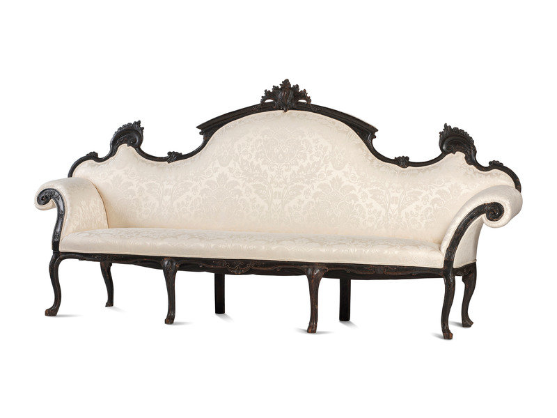 An Italian Carved and Black Painted Walnut High-Back Sofa
