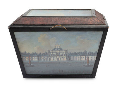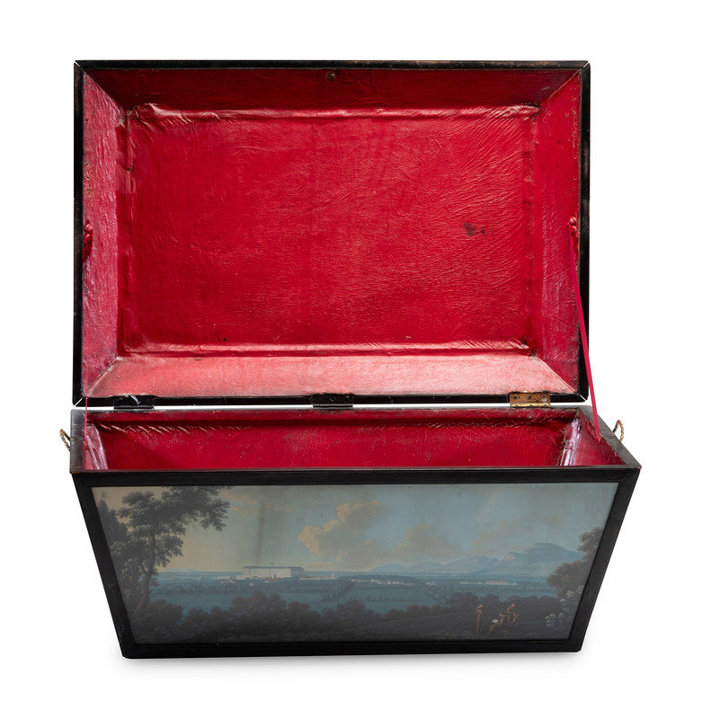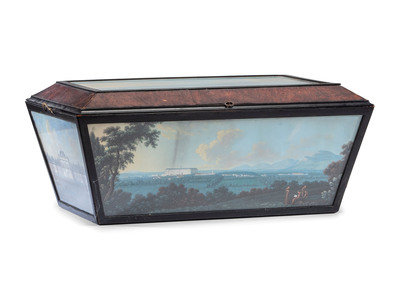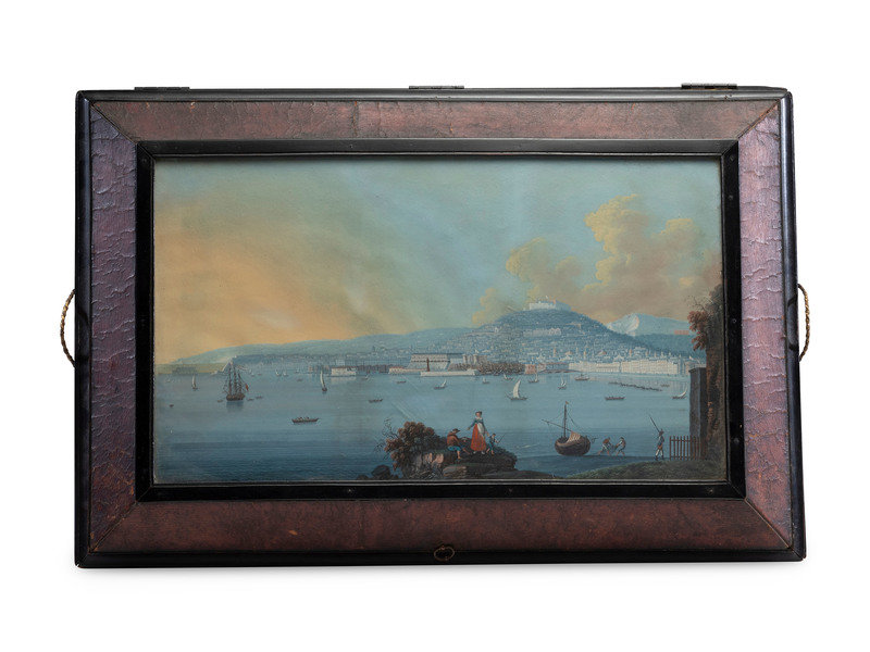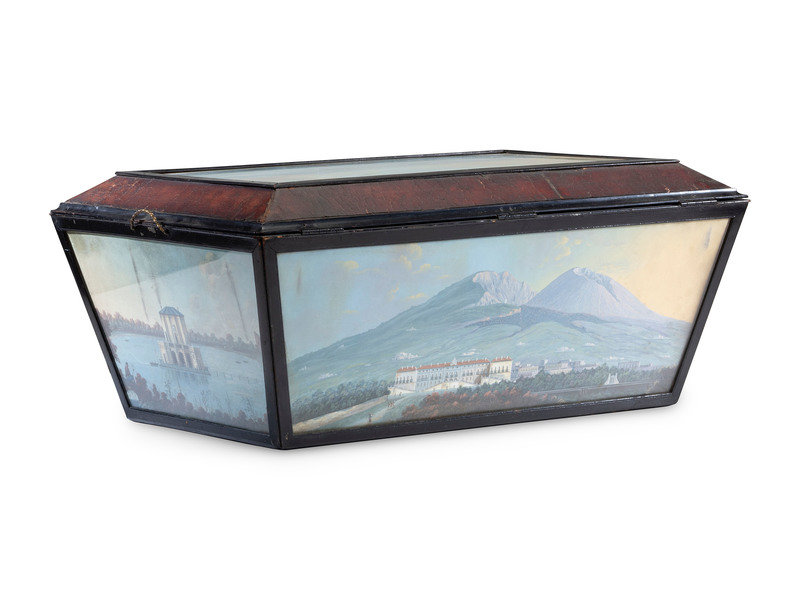 the top and four side panels inset with unsigned Neapolitan School watercolor scenes.