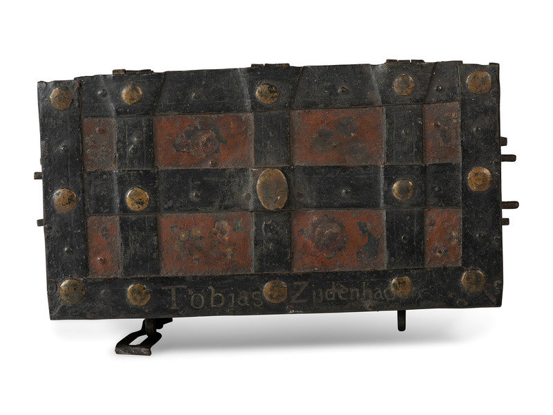 the lid inscribed Tobias Zudenhad-, a tack partially obscuring the surname.