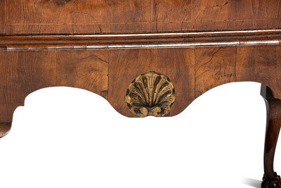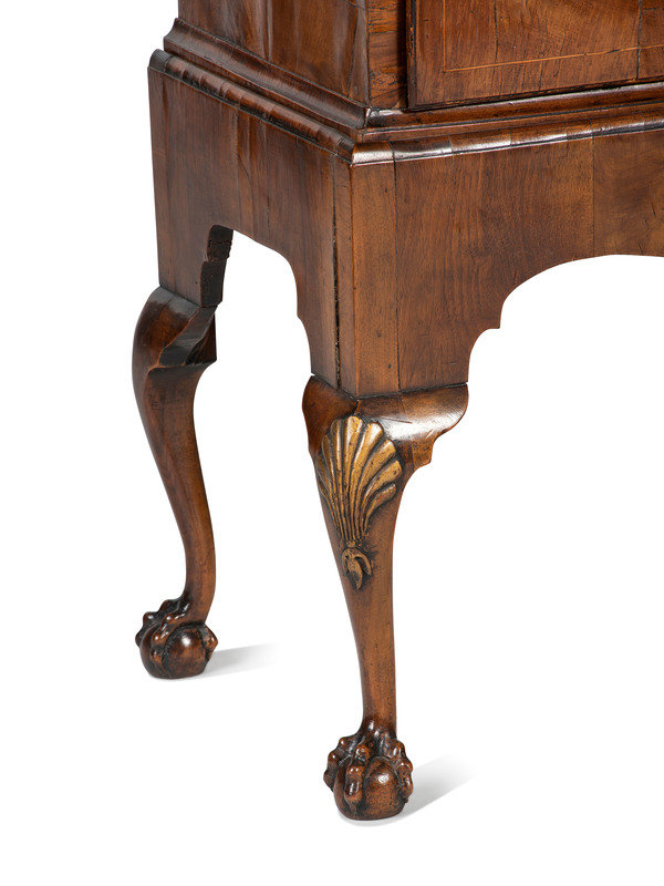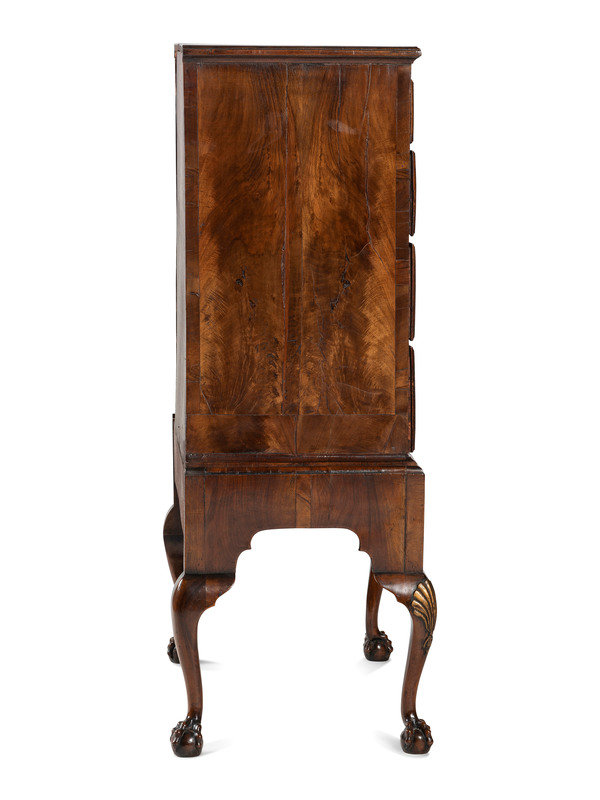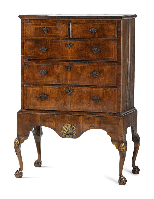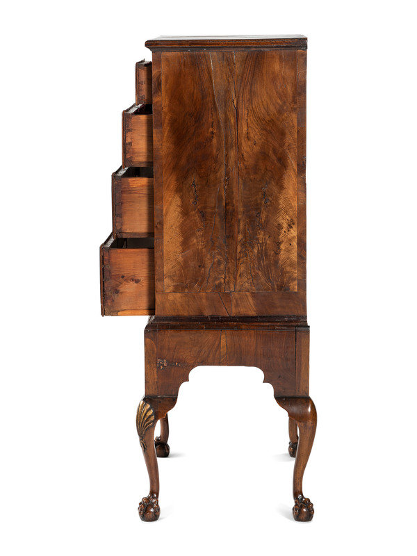A George II Shell-Carved and Parcel Gilt Walnut-Veneered Chest-on-Stand