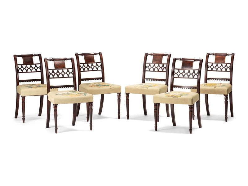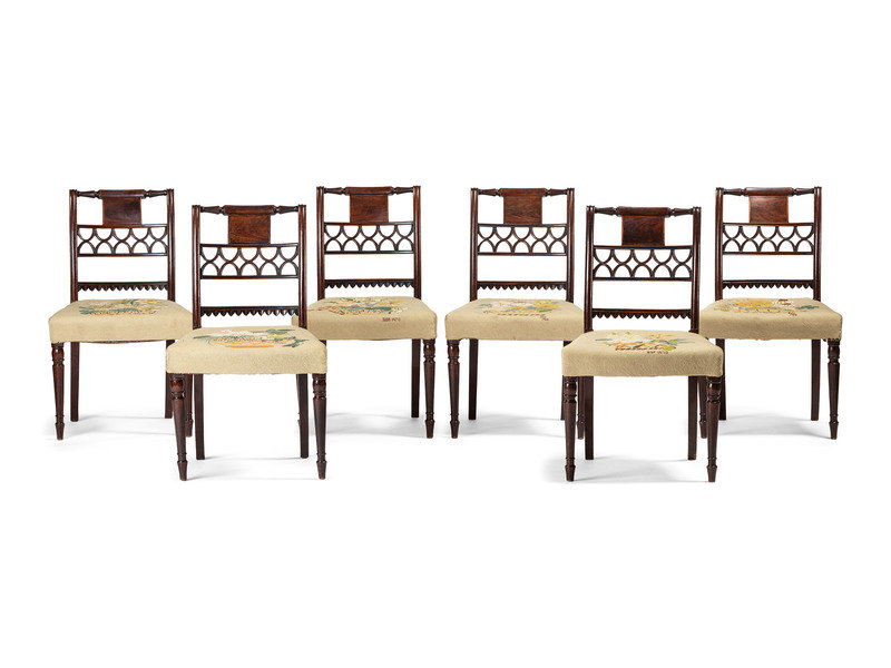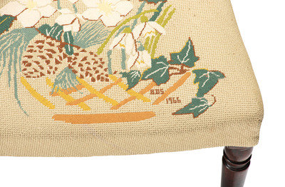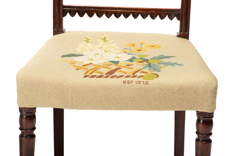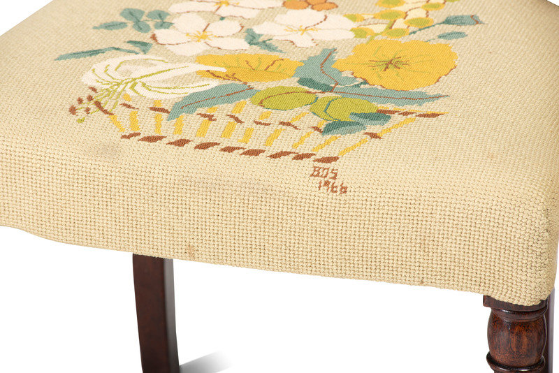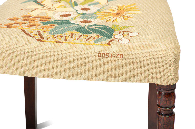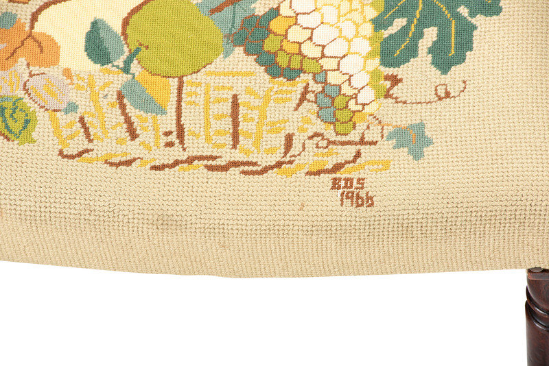 with floral needlepoint seats completed by Fleischmann family members, circa 1966-70.