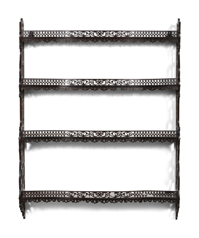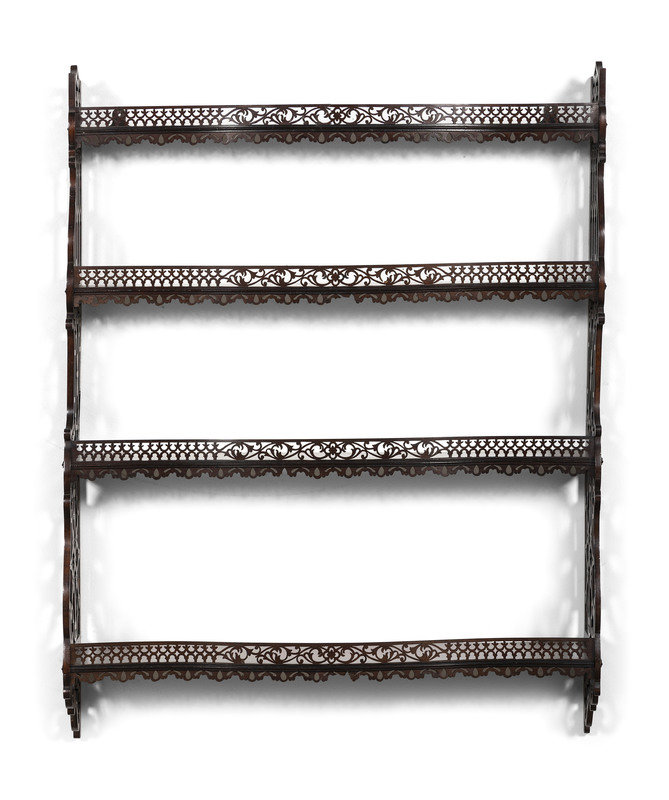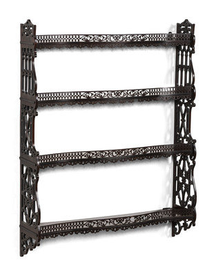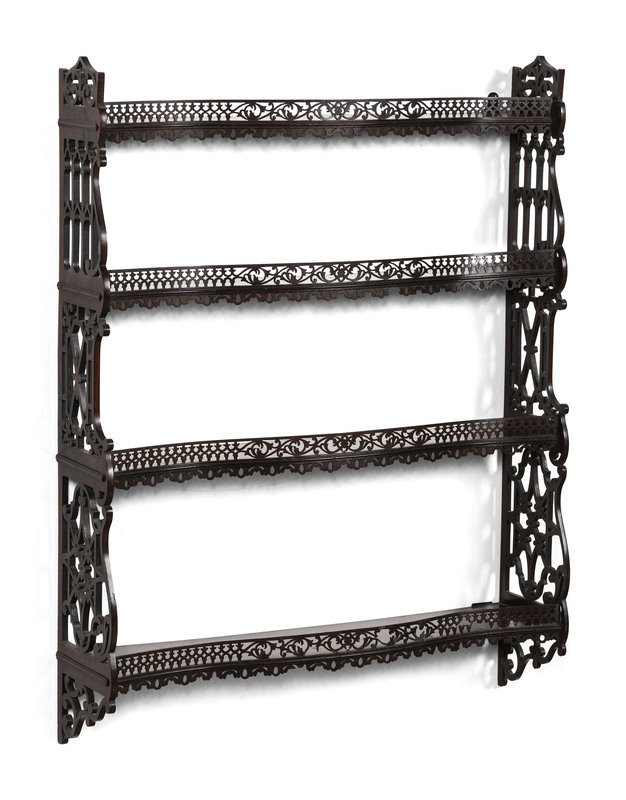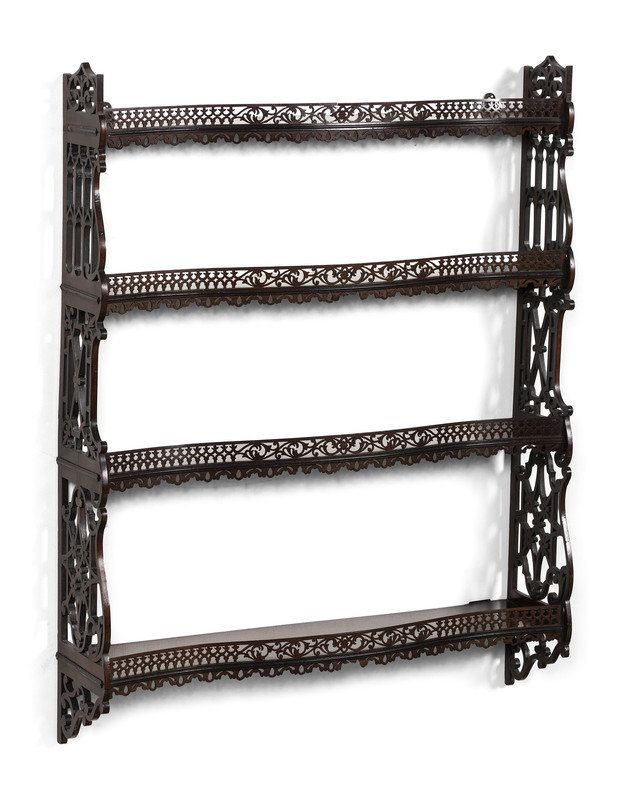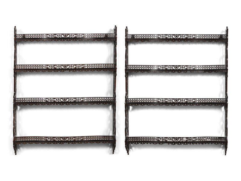 A Pair of Chinese Chippendale Pierced Mahogany Hanging Shelves