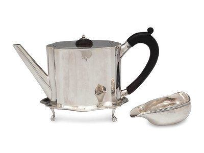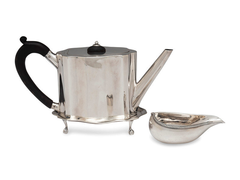 A Hester Bateman George III Silver Teapot on Stand and Pap Boat