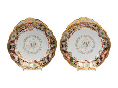 A Pair of Imari Decorated Porcelain Shell Dishes