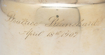 two monogrammed, one engraved 'Beatrice Blanchard / April 18th 1907', and one engraved Edward 'Morris Clark / Christmas 1902 / From E.K. Howes'.