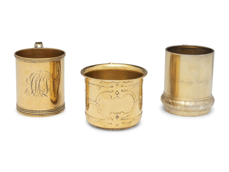 Three American Silver-Gilt Mugs