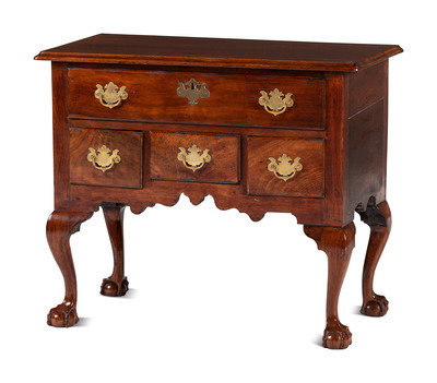 A Chippendale Carved and Figured Walnut Claw-and-Ball Foot Dressing Table