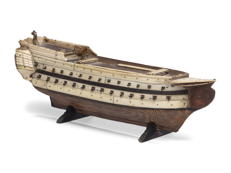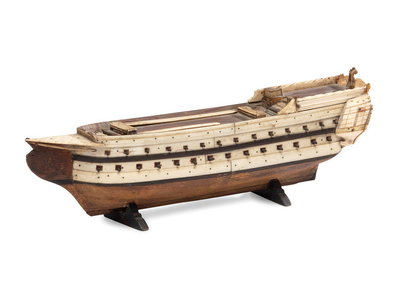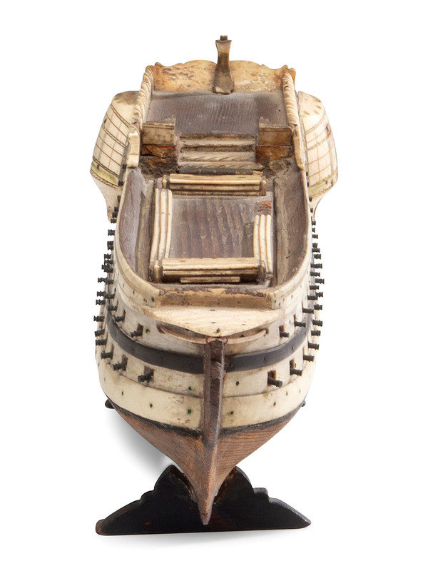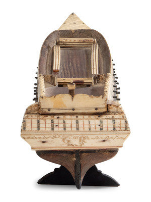 A French Prisoner of War Fruitwood and Bone Model Gunship