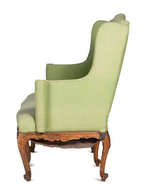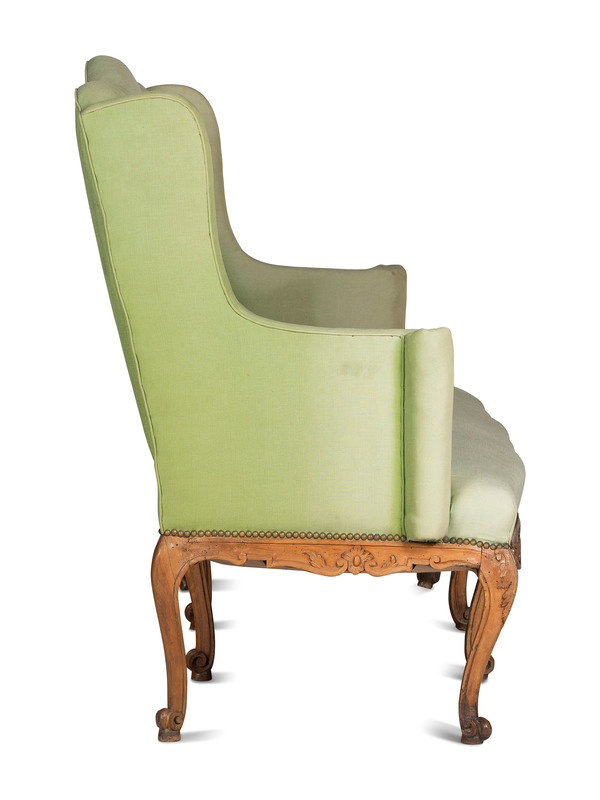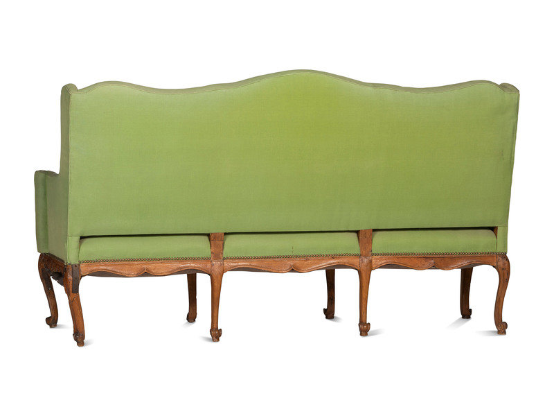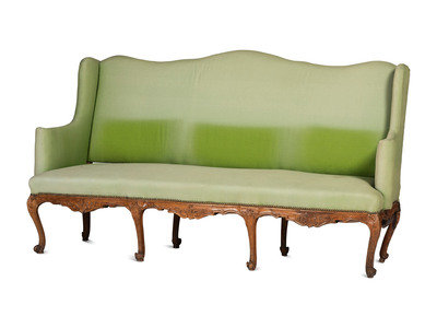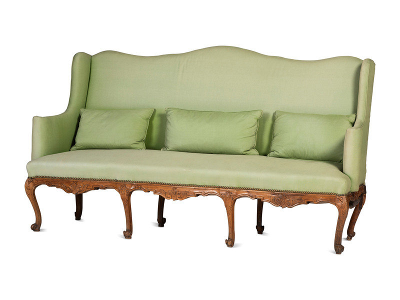 A French Provincial Carved Fruitwood Upholstered High-Back Sofa