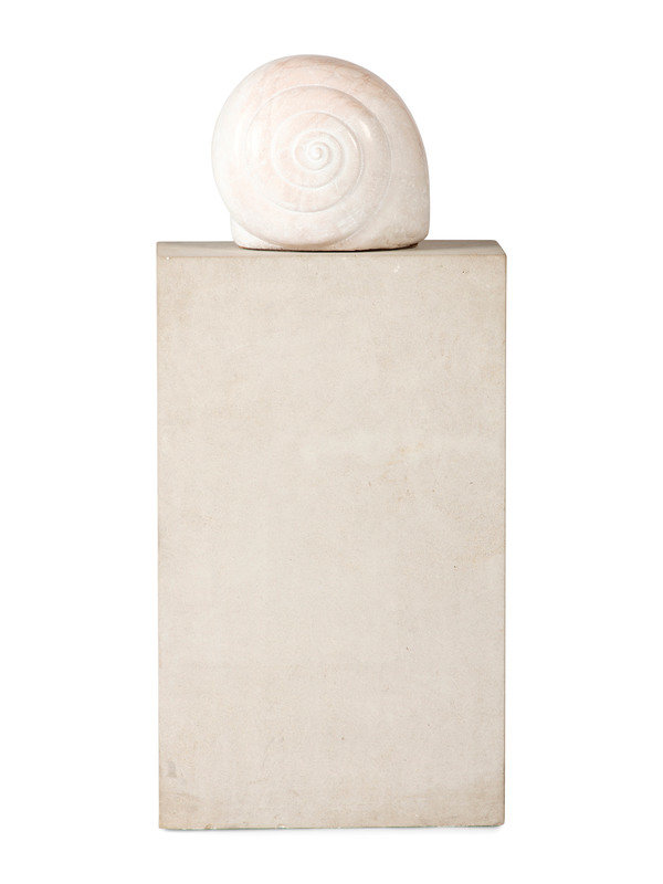 Height of snail 9 1/2 inches; overall height with plinth 39 1/2 inches.