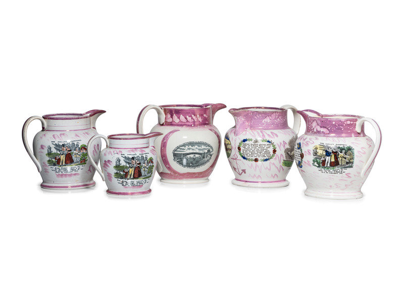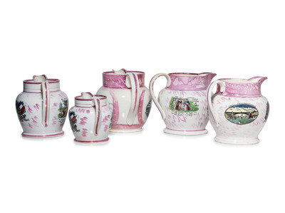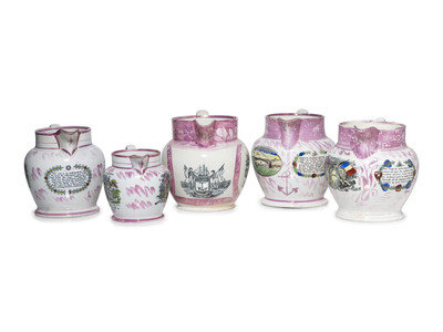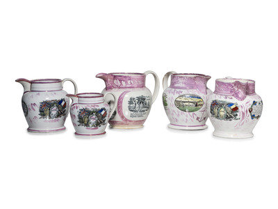 Five Sunderland Luster Crimean War Souvenir Jugs