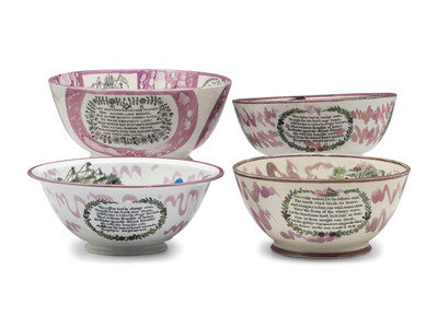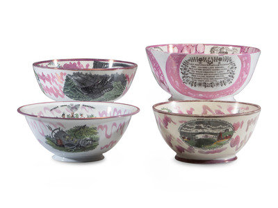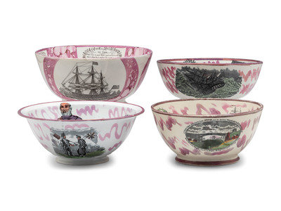 Four Sunderland Luster Center Bowls