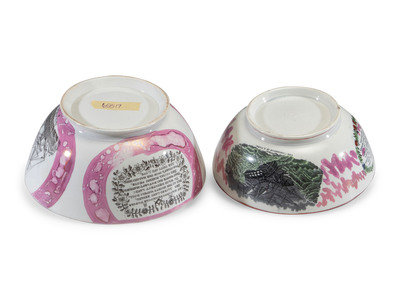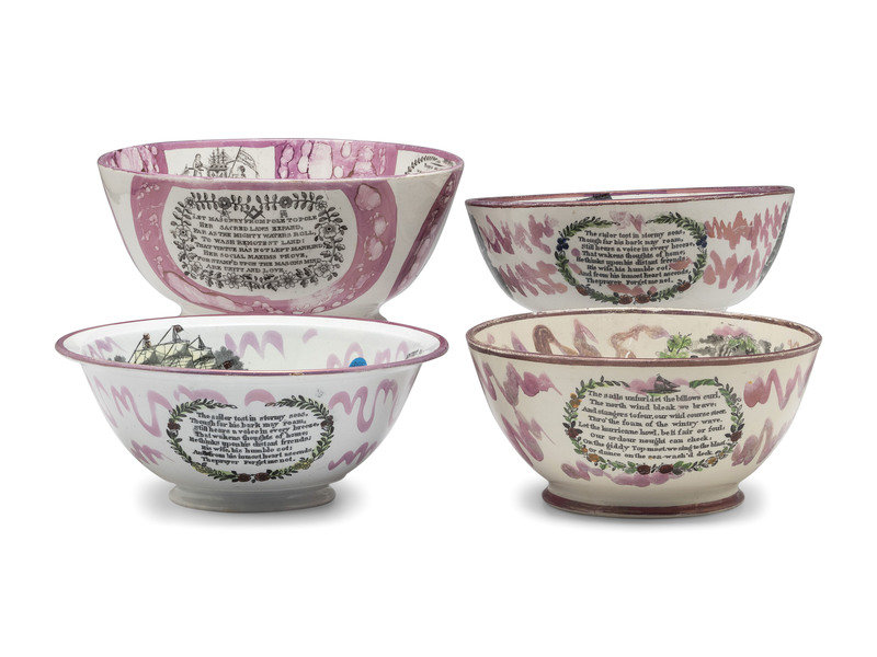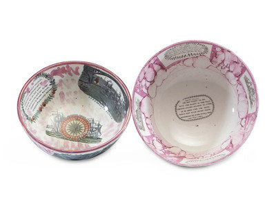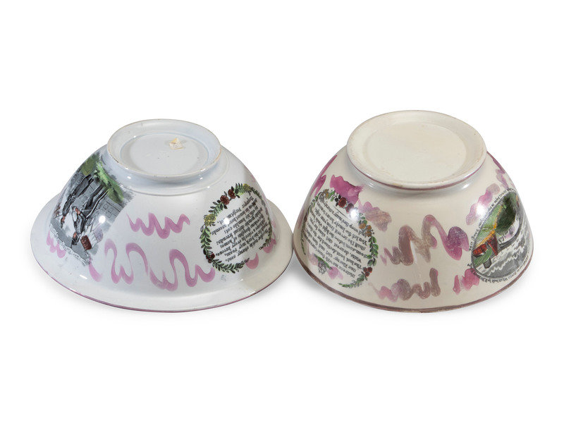 each with transfer text and images, and hand-painted decoration.