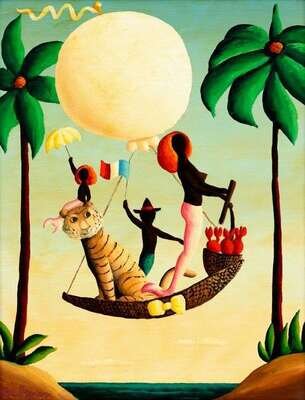 ORVILLE BULMAN (AMERICAN 1904-1978) TIGER AND MERMAIDS IN A HOT AIR BALLOON