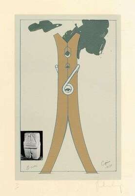 CLAES OLDENBURG (AMERICAN B. 1929) "PROPOSAL FOR A COLOSSAL STRUCTURE IN THE FORM OF A CLOTHESPIN - COMPARED TO BRANCUSI'S KISS"