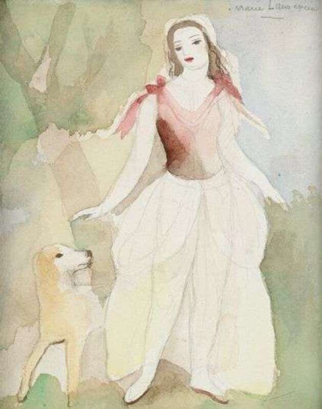 MARIE LAURENCIN (FRENCH 1883-1956) "JEUNE FEMME AVEC UN CHIEN"