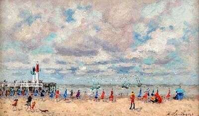 ANDRE HAMBOURG (FRENCH 1909-1999) "SUR LA PLAGE TROUVILLE"