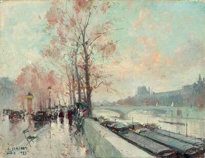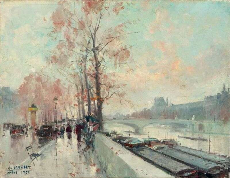JEAN SALABET (FRENCH 20TH CENTURY) BY THE BANKS OF THE SEINE