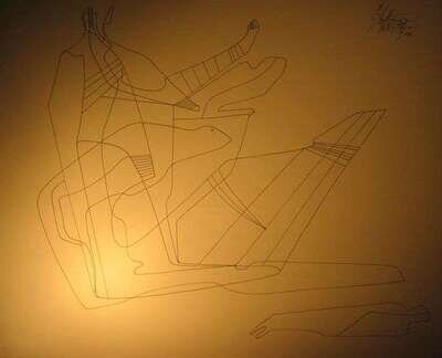 Signed and dated "M. Chemiakin 1975" and inscribed, "Paris/** (?)" upper right. Ink on paper.