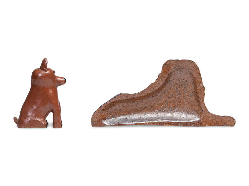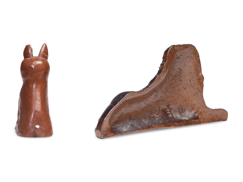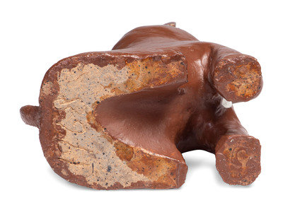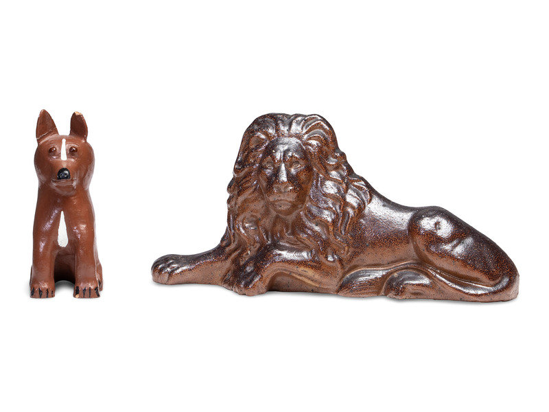 A Glazed Sewer Tile Recumbent Lion Doorstop