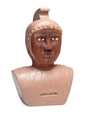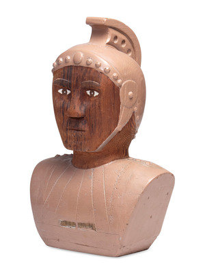 A Folk Carved and Painted Pine Roman Centurion Bust