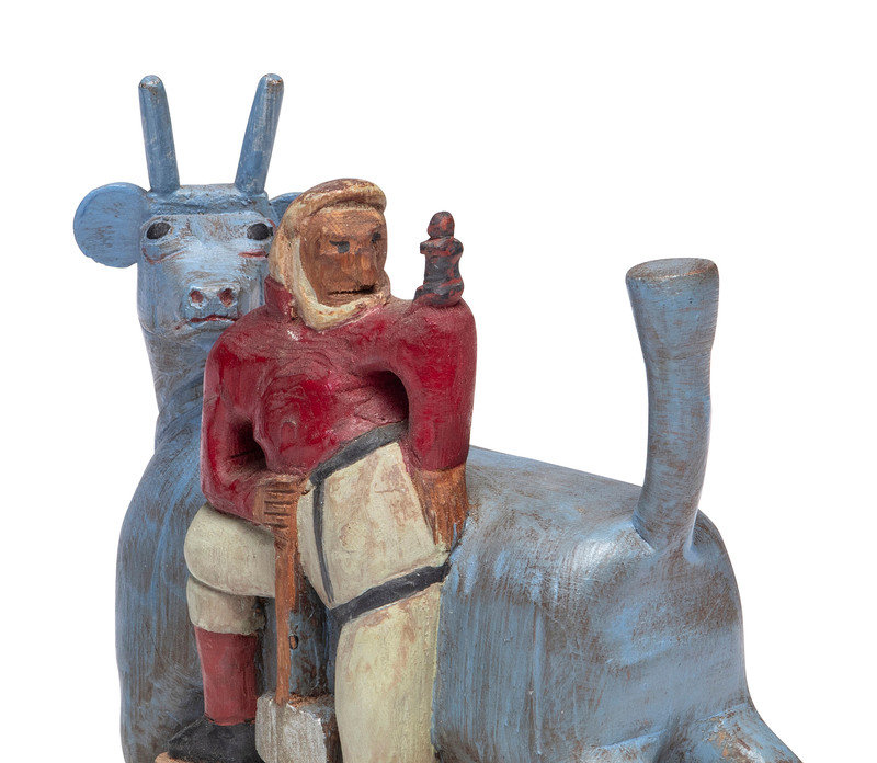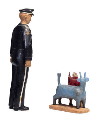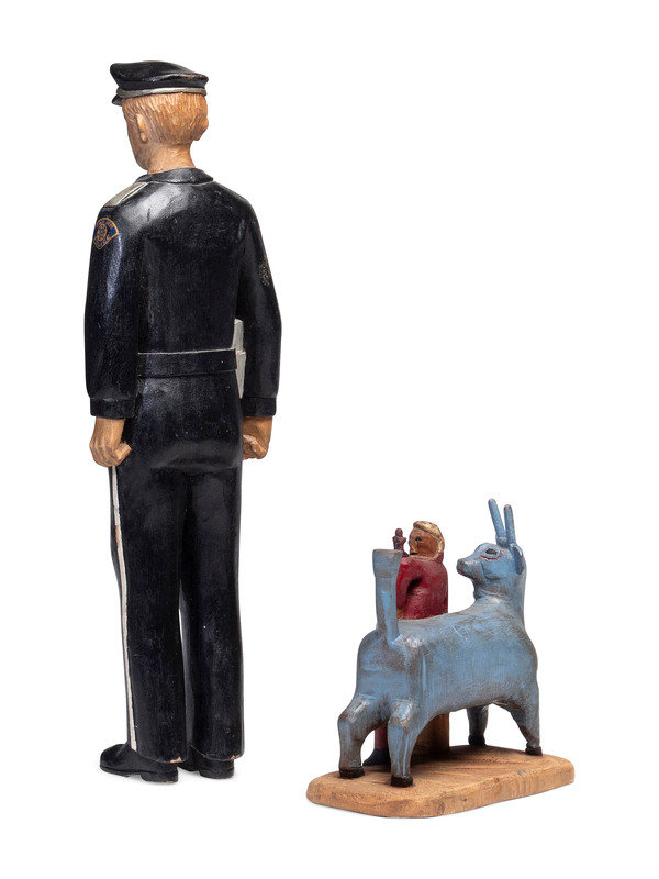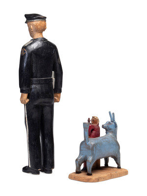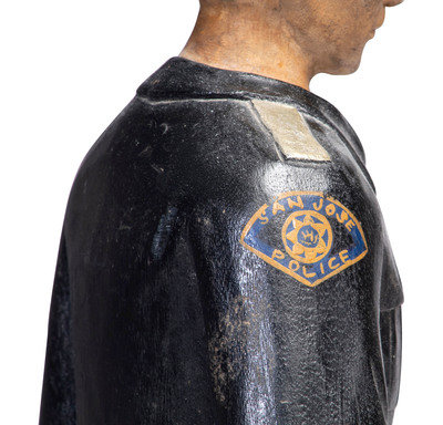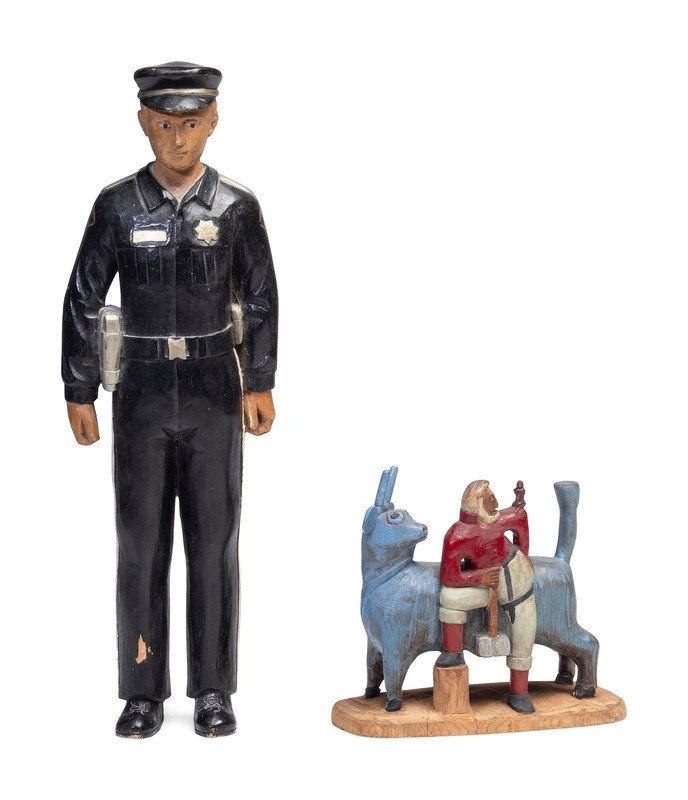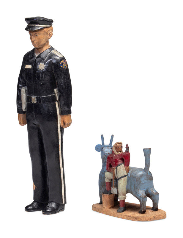 carved and painted wood figure of Paul Bunyan and Babe, together with an associated carved and painted wood figure of a San Jose police officer.