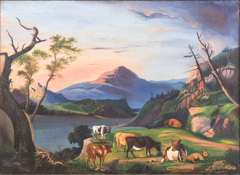stamped on back of canvas Julius Scholz / 47 South Street / Philadelphia / Prepared By / C. Rowley & Co. London
