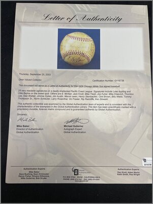 A 1939 Chicago White Sox Team Signed Autograph Baseball,