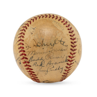 A 1941 World Series Champions New York Yankees Team Signed Autograph Baseball Featuring Joe DiMaggio (Beckett Authentication Services Letter of Authenticity)