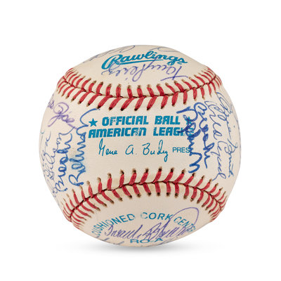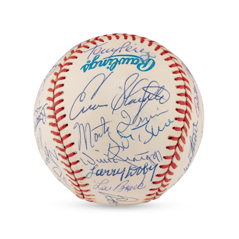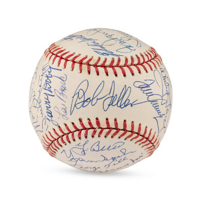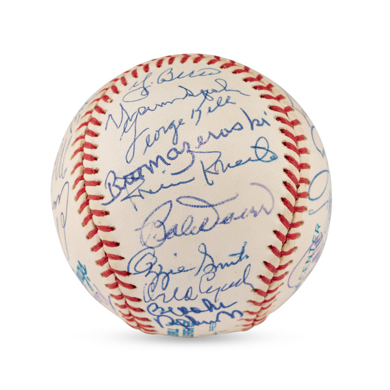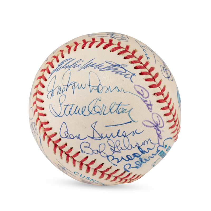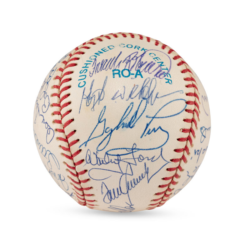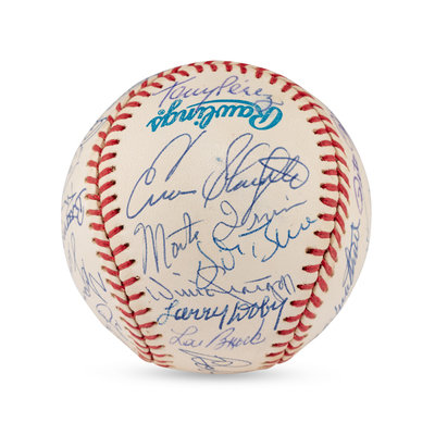 Includes Bob Feller, Yogi Berra, Warren Spahn, George Kell, Bill Mazeroski, Robin Roberts, Tony Perez, Bobby Doerr, Ozzie Smith, Orlando Cepeda, Brooks Robinson (2x), Bob Gibson, Don Sutton, Steve Carlton, Hal Newhouser, Eddie Mathewson, Frank Robinson, Hoyt Wilhelm, Gaylord Perry, Whitey Ford, Tom Seaver, Enos Slaughter, Monte Irvin, Willie Stargell, Larry Doby, Lou Brock. Also signed by Pete Rose and Vida Blue.