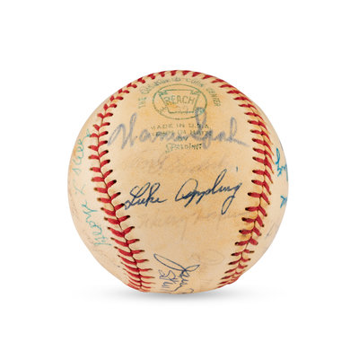A 1972 Hall of Fame Weekend Multi Signed Autograph Baseball Featuring Hank Greenberg, Satchel Paige and Casey Stengel (JSA Letter of Authenticity),