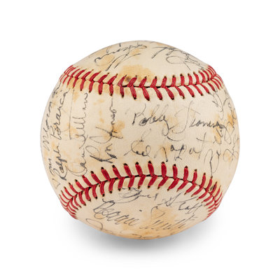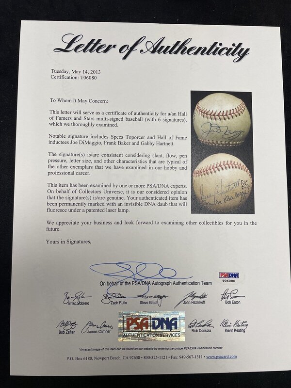 A Multi Signed Autograph Baseball Featuring Joe DiMaggio and Hall of Famers (PSA Letter of Authenticity),
