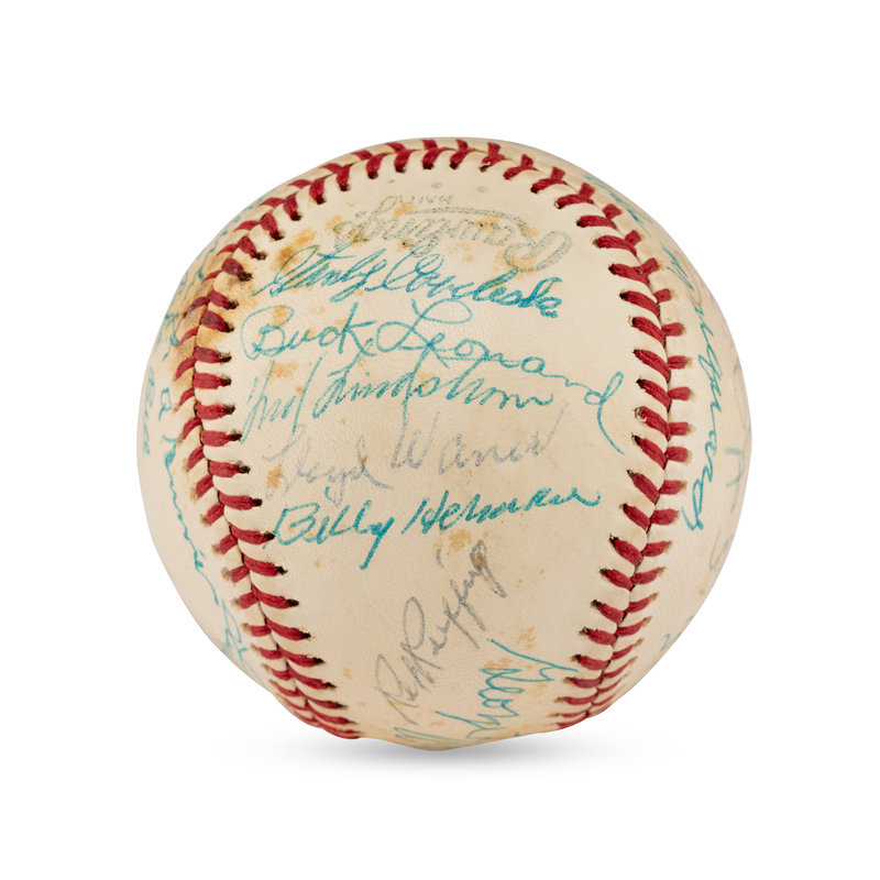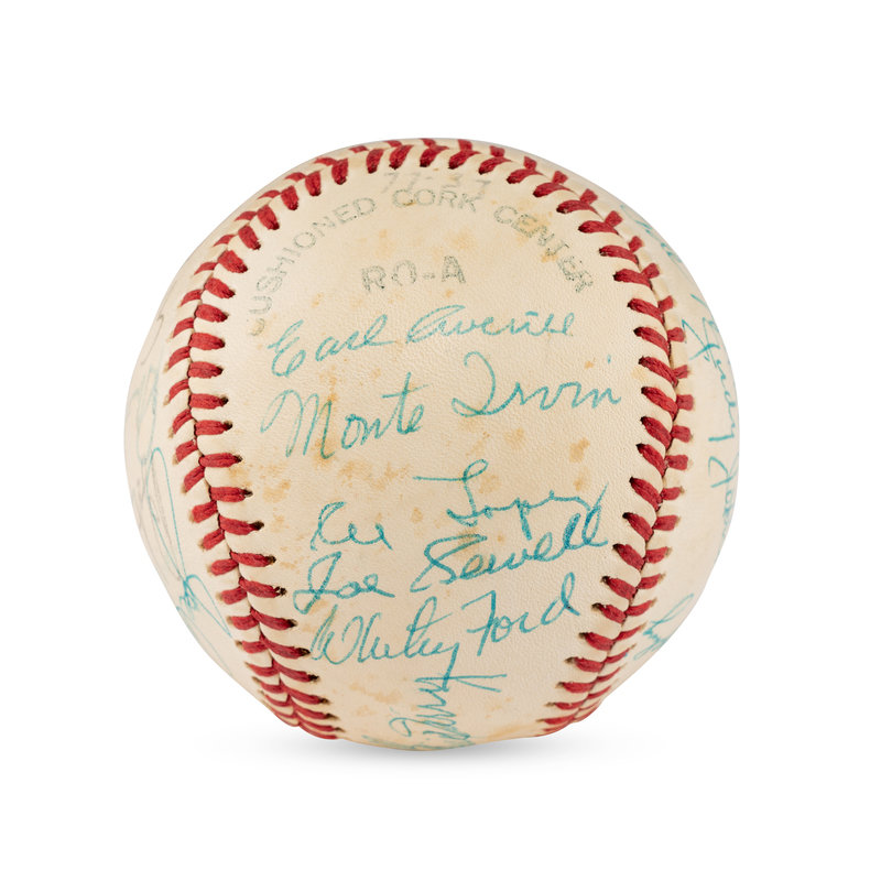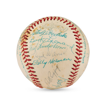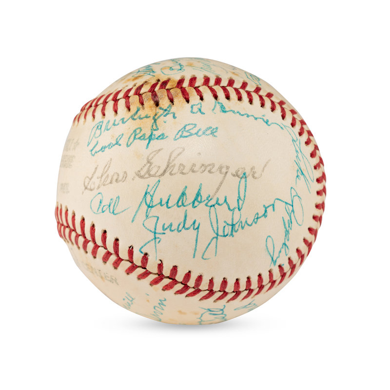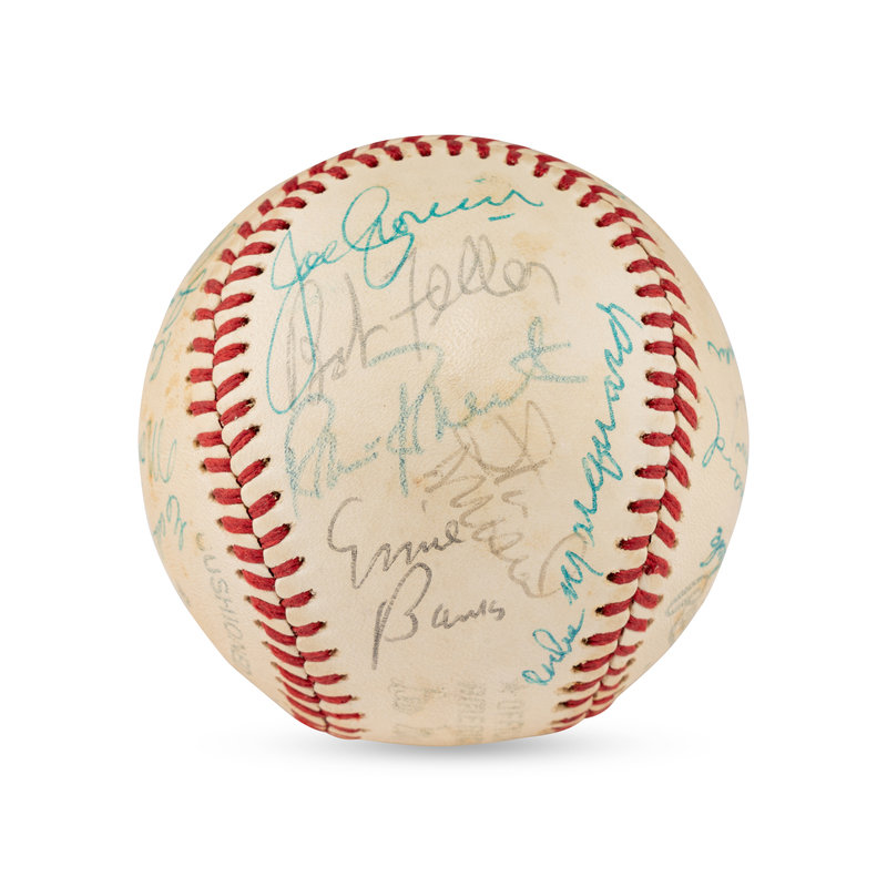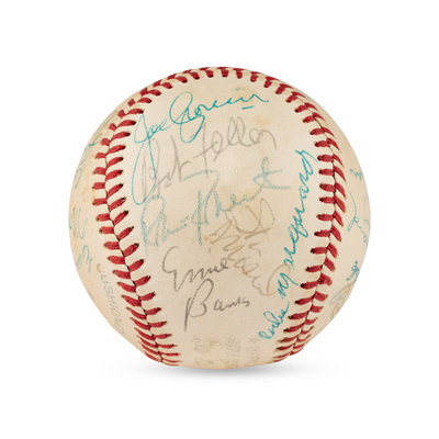 featuring signatures of George Kelly, Bill Terry, Red Ruffing, Luke Appling, Burleigh Grimes, Cool Papa Bell, Charlie Gehringer, Cal Hubbard, Judy Johnson, Rube Marquard, Ernie Banks, Stan Musial, Robin Roberts, Bob Feller, Joe Cronin, Earl Averill, Monte Irvin, Al Lopez, Joe Sewell, Whitey Ford, Billy Herman, Lloyd Waner, Fred Lindstrom, Buck Leonard, Stanley Coveleski.