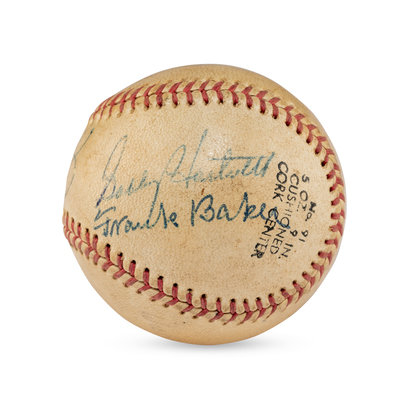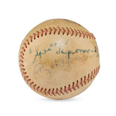 Includes Frank "Home Run" Baker, Joe DiMaggio, Gabby Hartnett. Also signed by Specs Toporcer and two others.