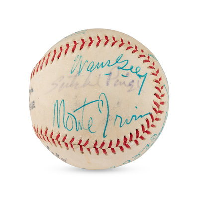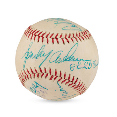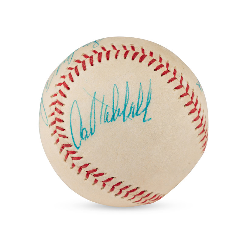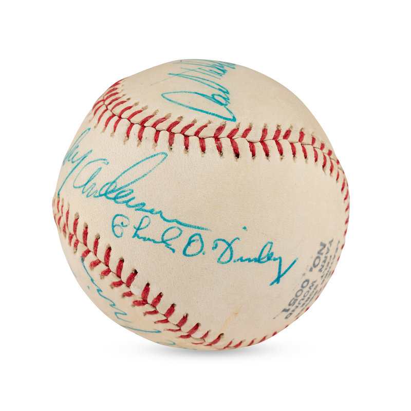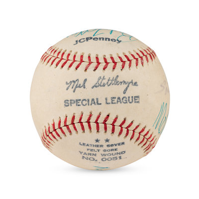 Includes Satchel Paige, Warren Giles, Monte Irvin, Carl Hubbell, Sparky Anderson, Bob Feller. Also signed by Charles O'Finley.