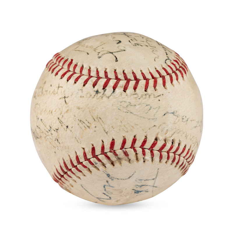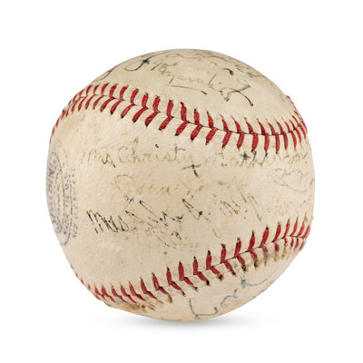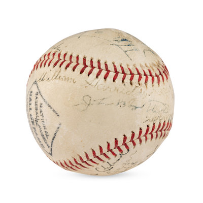 A Multi Signed Autograph Baseball Featuring Cy Young, Larry Lajoie, Kennesaw Mountain Landis and Additional Notables (Beckett Authentication Services Letter of Authenticity)