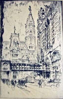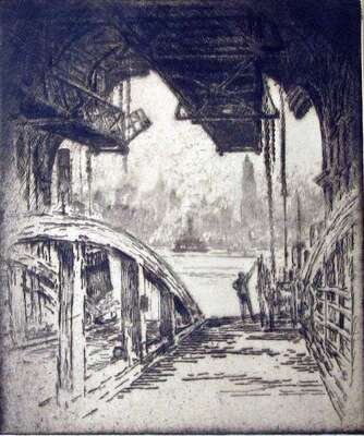 JOSEPH PENNELL (AMERICAN 1860-1926)THREE PRINTS "THE CORTLANDT STREET FERRY FROM THE JERSEY CITY SIDE"