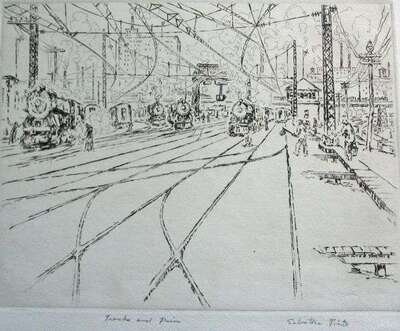 SALVATORE PINTO (ITALIAN / AMERICAN 1905-1966)FOUR ETCHINGS "TRACKS AND TRAINS"