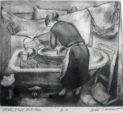 WILL BARNET (AMERICAN B. 1911) "MAKE-SHIFT KITCHEN"