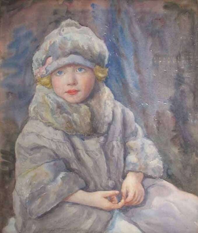 ELIZABETH GOWDY BAKER (AMERICAN 1860-1927)TWO WATERCOLORS BLONDE CHILD IN HAT AND COAT