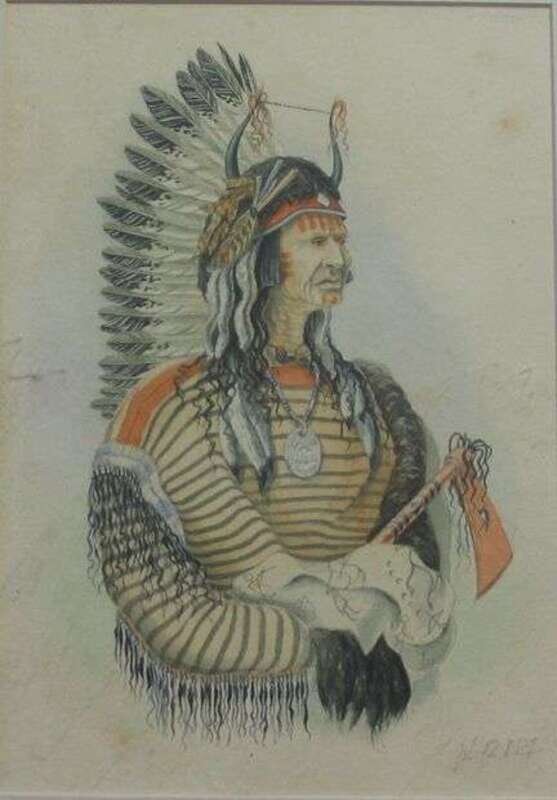 SCHOOL OF KARL BODMER (SWISS 1809-1893) PORTRAIT OF PLAINS INDIAN WITH AXE