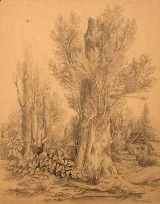 ELIZABETH ANN UPPJOHN (BRITISH SCHOOL 19TH CENTURY)TWO DRAWINGS TREE IN GLADE