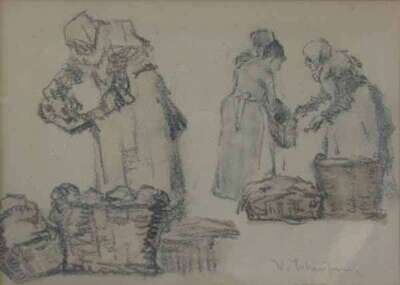 Signed indistinctly bottom right, graphite on paper