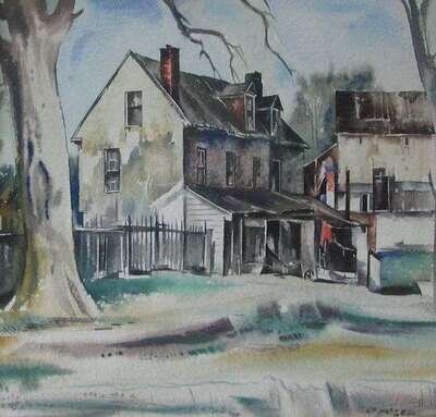 EARL HORTER (AMERICAN 1881-1940) HOUSE ON TREELINED STREET